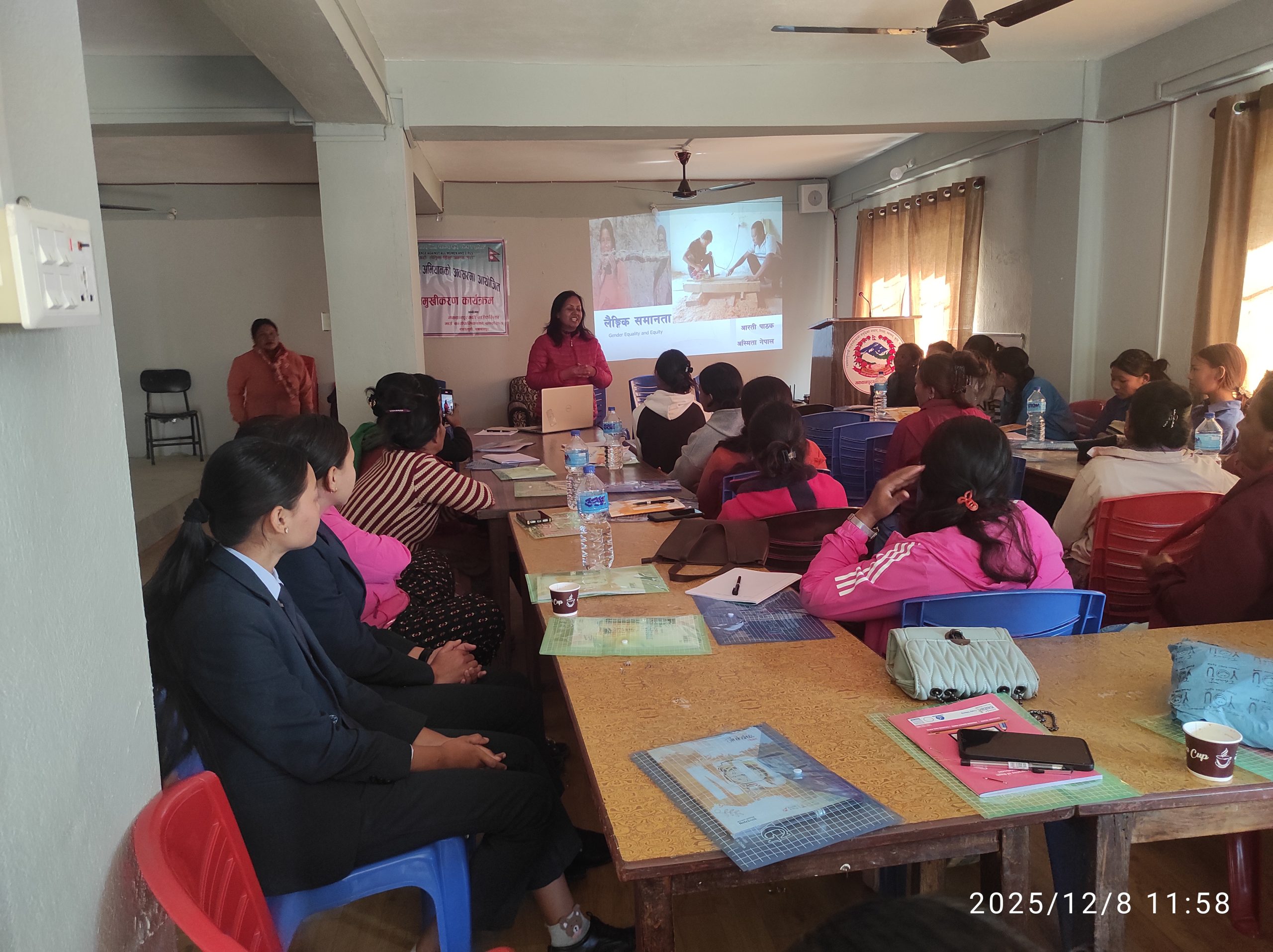 पालिका उपाध्यक्ष मानकुमारी पाख्रिनको सभाध्यक्षतामा सम्पन्न उक्त कार्यक्रममा ५० जनाको सहभागिता रहेको थियो। महिला बालबालिका शाखा प्रमुख तथा कार्यक्रम संयोजक साबित्री सापकोटाले सहजिकरण गर्नु भएको कार्यक्रममा पालीकाका विभिन्न शाखा प्रमुखहरू, महिला स्वास्थ्य स्वयंसेविका, सहकारी संस्थाका महिला प्रतिनिधि, किशोरीहरू लगायतको उल्लेखनीय उपस्थिति रहेको थियो।